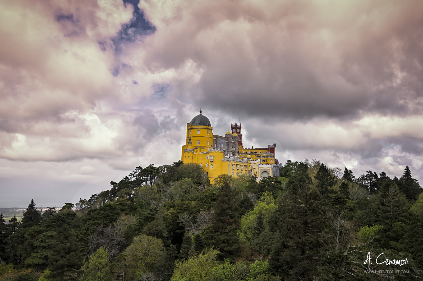 Fue el príncipe Fernando II de Portugal, esposo de la reina María II de Portugal, quien ordenó la construcción del palacio da Pena en 1836. El príncipe, católico de origen alemán, se enamoró de la zona de Sintra en una excursión que realizó junto a su esposa. En esta excursión, la pareja real pudo contemplar las ruinas de un antiguo monasterio devastado a raíz del terremoto de 1755. El monasterio había sido de los frailes de la Orden de San Jerónimo y fue construido, originariamente, por el rey Juan II y transformado, de forma substancial, por el rey Manuel I que, cumpliendo una promesa, ordenó la reconstrucción del monasterio en honor de Nossa Senhora da Pena y lo donó a la orden de San Jerónimo.